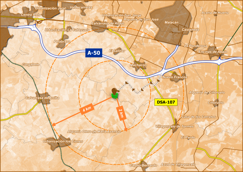 La arteria principal de entrada a la planta será a través de la AUTOVÍA A-50 Ávila-Salamanca.
